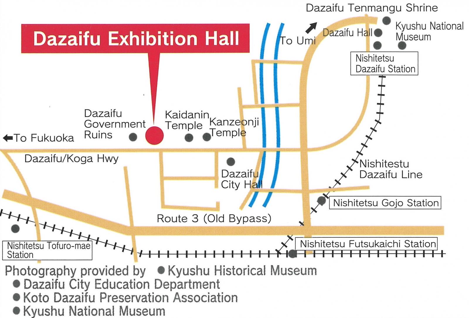 다자이후 전시관은 다자이후의 다채로운 역사에 대해 소개합니다. 방위를 목적으로 다자이후 지역의 자연 지형이 어떻게 활용되었는지, 궁전과 같은 정부기관의 정밀한 입체 모형에는 중국 특유의 영향이 어떻게 반영되어 있는지, 사람들이 입던 옷의 색상이 어째서 그들의 신분과 직업에 관련되어 있었는지, 당시의 다자이후에서 어째서 그렇게 다양한 요리를 먹을 수 있었는지 등 다자이후 전시관을 관람하면 당시의 다양한 일들에 대해 배울 수 있습니다. 사진 갤러리에서는 다자이후의 수많은 옛 영광들을 설명하고 오늘날까지 이어지고 있는 발굴 조사에 주목합니다.