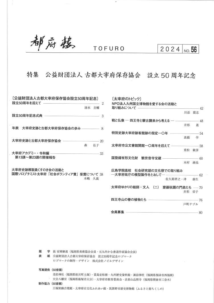 | タイトル | 都府楼56号 「公益財団法人古都大宰府保存協会 設立50周年記念」 |
